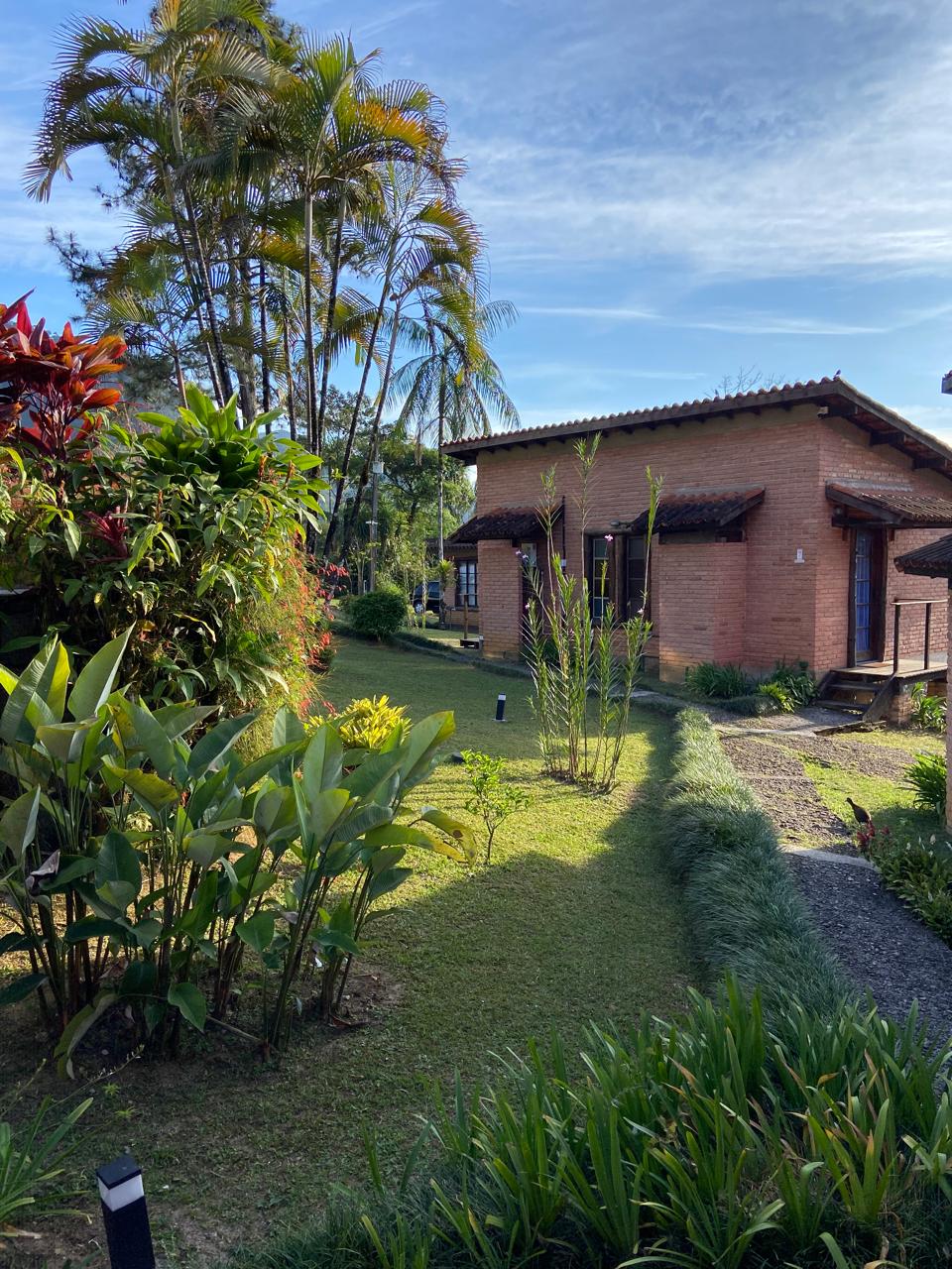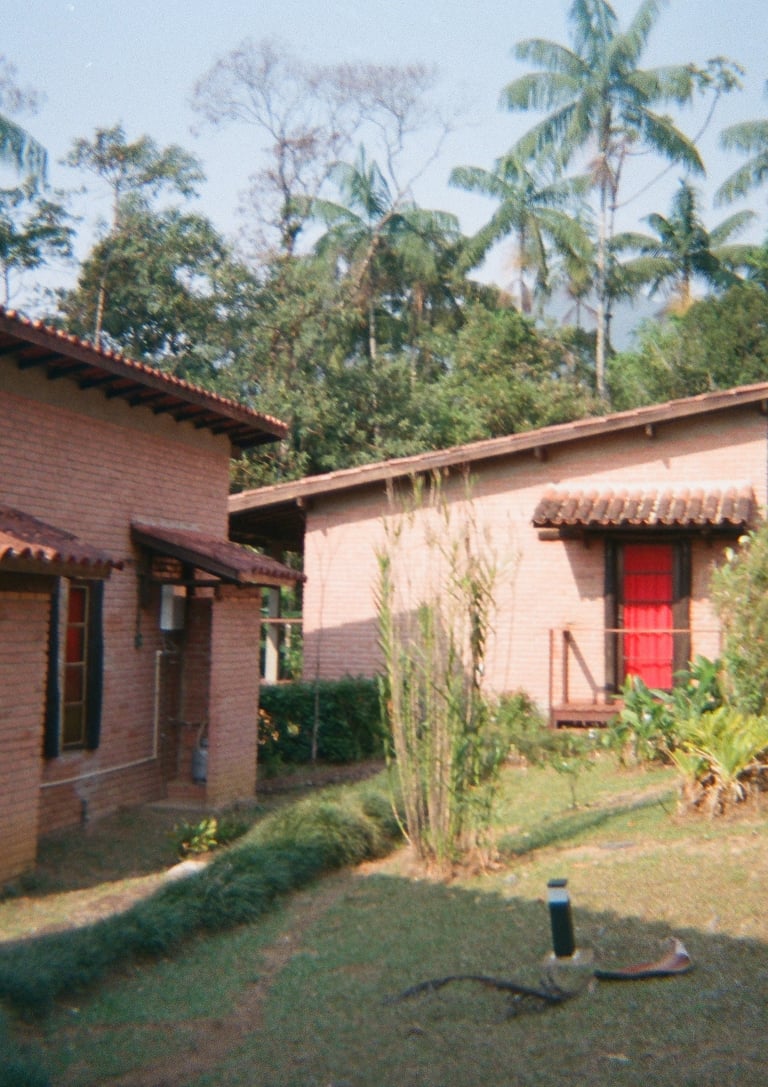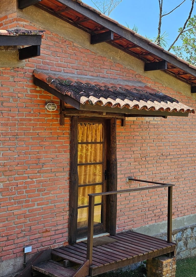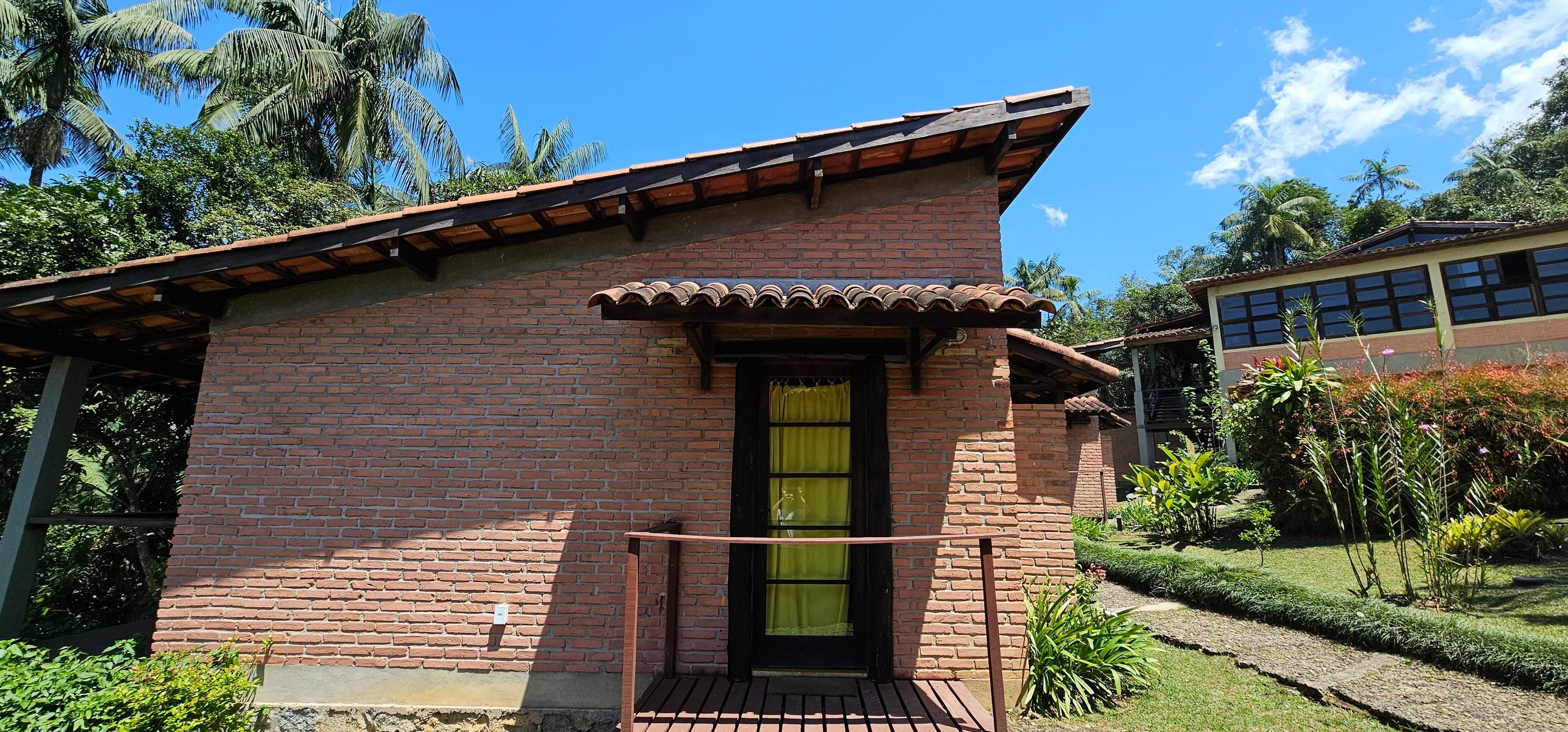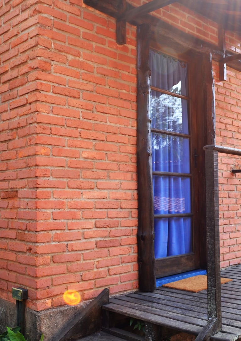 Cada chalé possui sua própria cor, o que torna cada um único e especial. Com suas paredes de tijolos aparentes e detalhes em madeira, nossos chalés são rústicos e acolhedores. Todos os chalés contam com frigobar, projetor smart com acesso a diversos streamings, wifi, ventilador de tomada e varanda.
