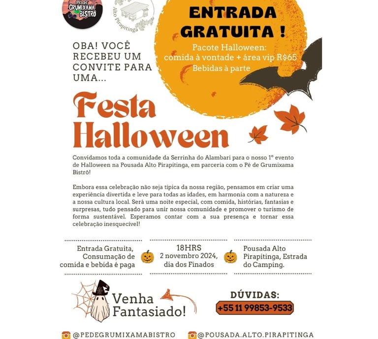 Entrada Gratuita Halloween da Pousada Alto Pirapitinga!